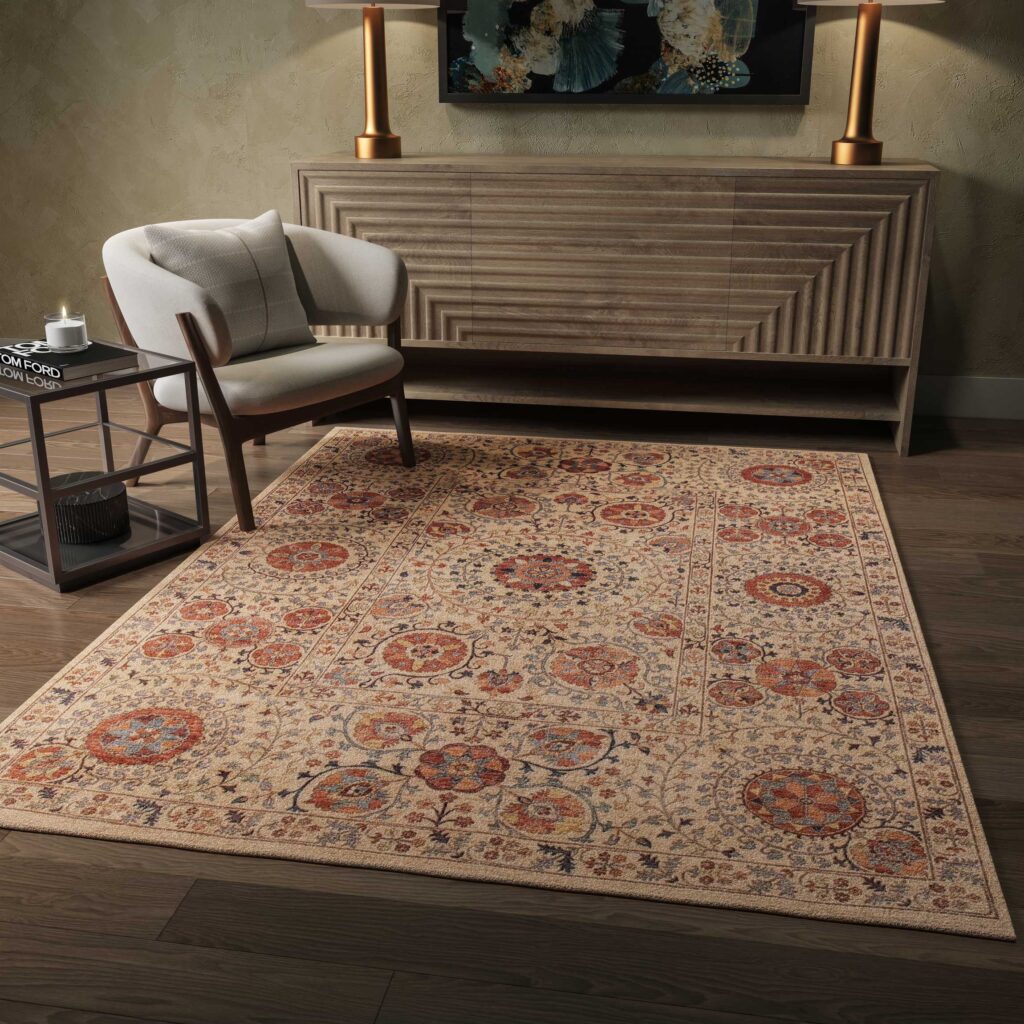 - Mittlere Größen: Zum Beispiel 140 x 228 cm oder 200 x 150 cm, perfekt als optische Inseln im Wohnzimmer.