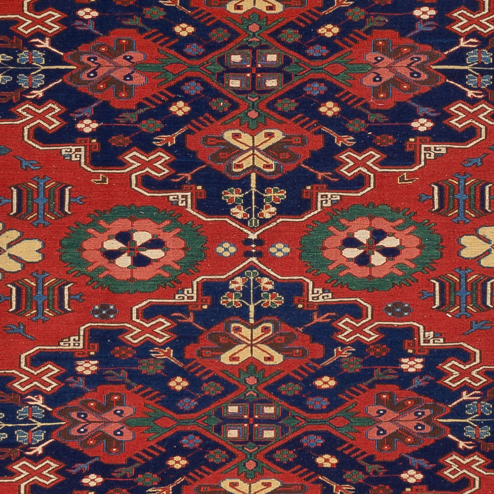 - Die Rauten-Symbolik: Zwischen den Hauptmotiven finden sich oft filigrane Rauten. Die Raute ist eine der ältesten Formen in der Welt der Orientteppiche und versinnbildlicht in der islamischen Welt die Unsterblichkeit der Seele.